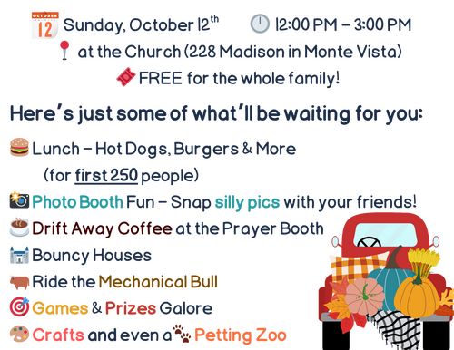 for information on the main attractions, but don't forget about our Chili Competition and our Harvest of Hope Food Drive!